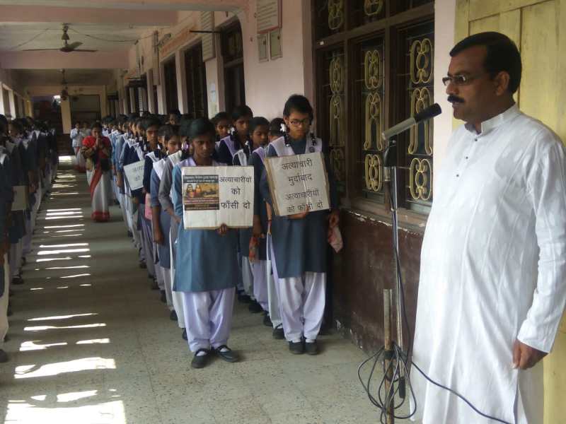 डॉ प्रियंका रेड्डी नृशंस हत्याकांड के विरोध में सरस्वती शिशु मन्दिर की छात्रो ने रखा मौन