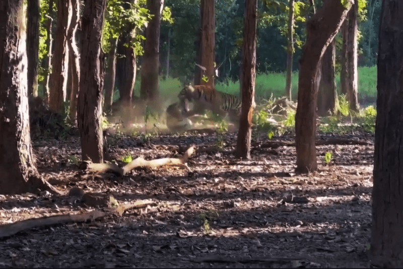 दोनों जंगल के अंदर साथ जाते वक्त अचानक लड़ने लगे और लड़ते लड़ते फिर साथ चलने लगे। बाघों के स्वभाव की यदि बात की जाए ऐसे नजारे तभी दिखाई देते है, जब किसी बाघ को अपने क्षेत्र मे अकेले रहना हो। ये उनके वर्चस्व की लड़ाई कहलाती हैं।