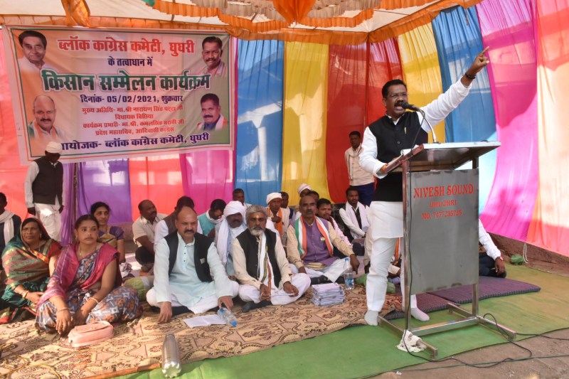 मंडला. अखिल भारतीय कांग्रेस कमेटी के निर्देशन पर जिले में ब्लॉक स्तरों पर किसान सम्मेलनों का आयोजन किया जा रहा है। जिसकी शुरुआत शुक्रवार से विकासखंड मुख्यालय घुघरी से की गई। घुघरी मुख्यालय में ब्लॉक कांग्रेस कमेटी के तत्वाधान में आयोजित इस किसान सम्मेलन में बिछिया विधायक नारायण सिंह पट्टा, जिला कांग्रेस कमेटी अध्यक्ष राकेश तिवारी, आदिवासी कांग्रेस के प्रदेश महासचिव व कार्यक्रम प्रभारी कमल सिंह मरावी, ब्लॉक कांग्रेस कमेटी अध्यक्ष अरविंद कुशराम सहित अनेक वक्ताओं ने उपस्थित किसानों को संबोधित किया। वक्ताओं ने अपने उद्बोधन में केंद्र की मोदी सरकार के द्वारा असंवैधानिक तरीके से लाए गए तीनो कृषि कानूनों के विषय मे विस्तार से जानकारी दी एवं इनसे किसानों को होने वाले नुकसानों के बारे में भी विस्तार से जानकारी दी गई। जिलाध्यक्ष राकेश तिवारी ने कहा कि मोदी सरकार ने किसानों को उद्योगपतियों के हाथों बेचने के लिए ये काले कानून बनाये हैं। चंद पूंजीपतियों को लाभ देने के लिए देश के लोकतंत्र से खिलवाड़ किया जा रहा है। हम ऐसा होने नहीं देंगे कांग्रेस पार्टी किसानों के साथ हमेशा खड़ी रहेगी। उपस्थित नागरिकों किसानों को संबोधित करते हुए बिछिया विधायक नारायण सिंह पट्टा ने कहा कि भाजपा की सरकारें आज से नहीं हमेशा से किसान विरोधी रही हैं और इसलिए इन तीन काले कानूनों से किसानों को खत्म करने की साजिश की जा रही है। कांग्रेस पार्टी हमेशा किसानों के साथ खड़ी थी और रहेगी, अंतिम सांस तक कांग्रेस पार्टी किसानों के हक़ की लड़ाई लड़ती रहेगी। किसान सम्मेलन में किसानों का सम्मान किया गया एवं आंदोलन में शहीद हुए किसानों को श्रद्धांजलि अर्पित की गई। इस दौरान राजेंद्र सोनी, नेतराम साहू, उमेश धारवैया, अनुराग शर्मा, अरविंद झारिया, संजू पटेल, शालिक करचाम, अशोक अहिरवार, राधे मरावी, जानकी कुसमरिया, गीता मरावी, रूक्मणी सोनवानी, जागेश्वर धार आदि की उपस्थिति रही। मंच संचालन राधेशाह मरावी ने किया एवं आभार प्रदर्शन ब्लॉक अध्यक्ष अरविंद कुशराम ने किया।