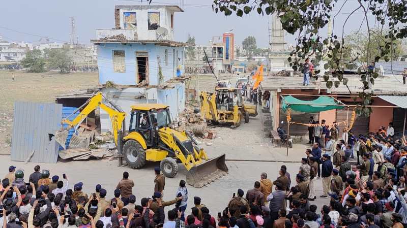 जानकारी के अनुसार रविवार की घटना के बाद सोमवार को पुलिस प्रशासन ने सख्ती दिखाते हुए घटना में संलिप्त आरोपियों के अवैध निर्माण पर जेसीबी चलाकर निर्माण ध्वस्त किया। सबसे पहले प्रशासन की टीम चुना भट्टा स्थित शिवजी मगरा पहुँची। जहां 2 आरोपियों अरबाज खान का 30 फिट का निर्माण, सोहेल शाह का लकड़ी का अवैध निर्माण जमीदोंज किया। इसके बाद तीसरा अवैध निर्माण रेलवे स्टेशन रोड़ तीन मंजिला मकान पूरी तरह जमीदोंज किया गया। चौथे अवैध निर्माण यश अमोन्स के घर के बाहर बना अवैध निर्माण हटाया। सुबह से पुलिस प्रशासन नगर में मुस्तेद रहा। दलौदा थाने के बल सहित भावगढ़ थाना, अफजलपुर थाना के बल सहित मंदसौर एसडीएम एसएल शाक्य व एसडीओपी कीर्ति बघेल, मल्हारगढ़ एसडीएम व एसडीओपी नरेंंद्र सौलंकी, दलौदा तहसीलदार सहित प्रशासनिक अमला मौजूद रहा। सोशल मीडिया पर कार्रवाई की सूचना मिलते ही पूरे नगर सहित आसपास के क्षेत्र के हिन्दू समाज व हिन्दू संगठनों के लोग एकत्र होने शुरू हो गए थे। कार्रवाई सुबह 9 बजे से दोपहर 2 बजे तक जारी रही।