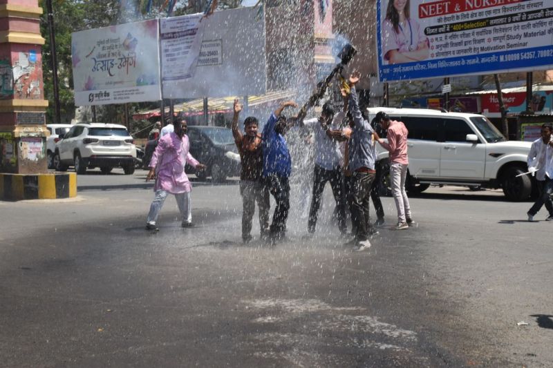 प्रदेश सरकार और मुख्यमंत्री के खिलाफ सोमवार को एनएसयूआई ने प्रदर्शन करते हुए पुतला फूंका। इस दौरान धरना भी दिया। पुलिस ने धरना दे रहे कार्यकर्ताओं को बलपूर्वक पहले हटाने की कोशिश की इसके बाद फायर फायटर से पानी की बोछार कर इन्हें हटाने की कोशिश की गई। इसके बाद भी एनएसयूआई कार्यकर्ताओं ने पुलिस को चकमा देकर सीएम को पुतला फूंक दिया। इस दौरान पानी में नेता व कार्यकर्ता भीग गए। इस दौरान जमकर सरकार के खिलाफ नारेबाजी करते हुए प्रदर्शन किया। संविदा शिक्षक वर्ग-3 की परीक्षा के पेपर लीक होने एवं पुलिस कांस्टेबल परीक्षा के परिणाम में हो रही गड़बडिय़ों को लेकर एनएसयूआई जिलाध्यक्ष सुनील बसेर के नेतृत्व में मुख्यमंत्री चौहान का पुतला फूंककर प्रदर्शन किया।