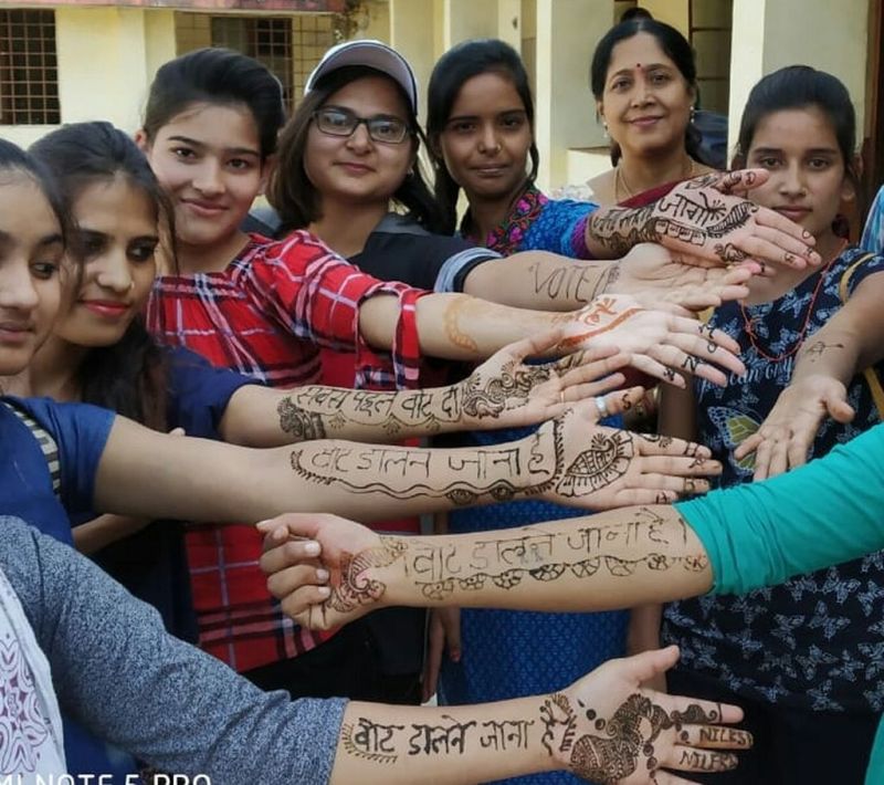 हाथों पर मेहंदी से लिखा- वोट डालने जाना है...