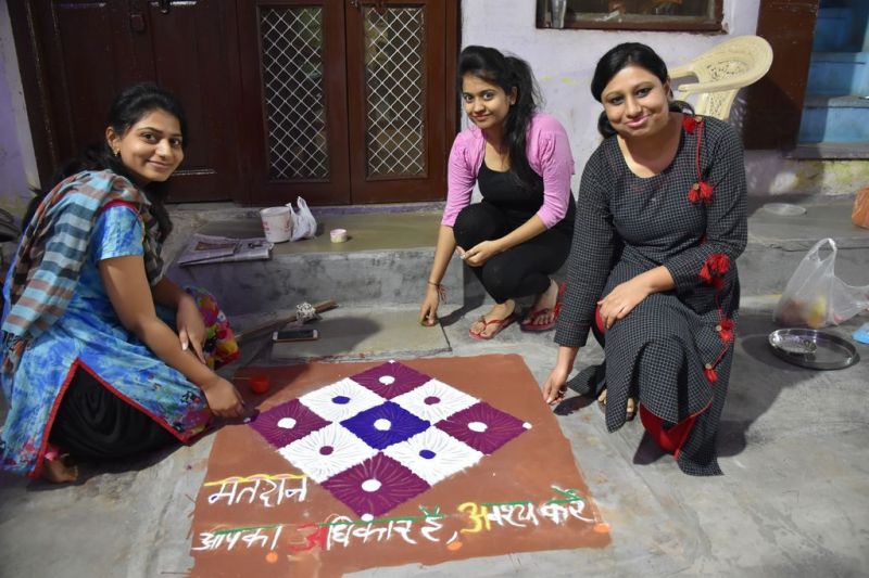 आगामी विधानसभा चुनाव में मतदान करने के लिए प्रेरित करने के लिए ग्रामीणों को मतदान केंद्र क्रमांक 46 से 50 तक की बीएलओ, आंगनबाड़ी कार्यकर्ताओं एवम् सहायिकाओं द्वारा महिलाओं को मतदान से संबंधित नार, घरों के आँगन में रंगोली से लिखकर उन पर दीप प्रज्वलित कर मतदान के लिए प्रेरित किया गया। इस अवसर पर श्यामलता आचार्य, आशारानी आचार्य, रेणु जायसवाल, प्रेमलता शर्मा, विद्या बलसोरिया,्र सहित कई महिलाएं और आंगबाड़ी कार्यकर्ता एवम् सहायिका मौजूद रही।