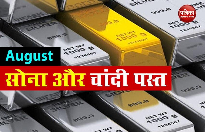नई दिल्ली। अगस्त के महीने में सोना और चांदी के दाम में गिरावट ( Gold And Silver Price Down ) देखने को मिल चुकी है। खासकर 7 अगस्त के बाद से यह गिरावट और बढ़ी है। घरेलू वायदा बाजार में उस सोना और चांदी ( Gold And Silver Price ) दोनों ने ही अपना लाइट टाइम हाई बनाया था। तब से अब सोना और चांदी काफी उतार चढ़ाव के बाद काफी सस्ते हो चुके हैं। अगर आज के न्यूनतम स्तर से तुलना करें तो सोना ( Gold Price Down ) करीब 6400 रुपए तक सस्ता हो चुका है। जबकि चांदी के दाम ( Silver Price Fall ) में करीब 15 हजार रुपए की गिरावट देखने को मिल चुकी है। आज भी सोना सुबह से काफी उतार चढ़ाव के कारोबार कर रहे हैं। आइए आपको भी बताते हैं कि आखिर सोना और चांदी बीते एक महीने में किस तरह का कारोबार कर रहे हैं।