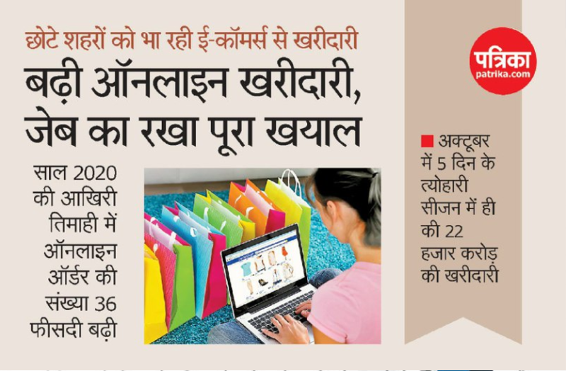 अहमदाबाद, कानपुर, चंडीगढ़, जयपुर जैसे टियर 2 और टियर 3 शहरों के लोग अब ज्यादा ऑनलाइन शॉपिंग कर रहे हैं। अक्टूबर-दिसंबर 2019 तिमाही में ऑनलाइन शॉपिंग में इन शहरों का हिस्सेदारी 32 फीसदी थी जो अक्टूबर- दिसंबर 2020 में बढक़र 46 प्रतिशत हो गई।