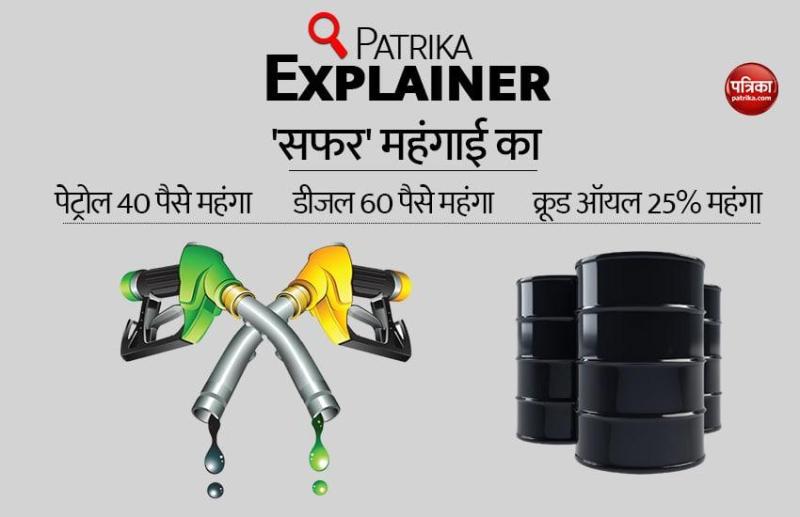 नई दिल्ली। पेट्रोल और डीजल की कीमत में लगातार इजाफा देखने को मिल रहा है। बीते शुक्रवार से अब तक यानी तीन दिन में पेट्रोल की कीमत में 40 पैसे प्रति लीटर से ज्यादा की बढ़ोतरी हो चुकी है। जबकि डीजल के दाम 60 पैसे प्रति लीटर से बढ़ चुके हैं। अगर बात आज की करें तो पेट्रोल के दाम में 8 पैसे और डीजल की कीमत में 20पैसे प्रति लीटर की बढ़ोतरी हो चुकी है। डीजल की कीमत में बढ़ोतरी देश की महंगाई में असर डालता है। देश में खासकर खाद्य पदार्थों की कीमत में बढ़ोतरी करता है। आइए आपको भी बताते हैं कि आखिर पेट्रोल और डीजल के दाम कितने हो गए हैं और उसके क्या कारण हैं...