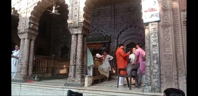 नई व्यवस्था के तहत बांके बिहारी जी के मंदिर में दर्शन करते भक्त