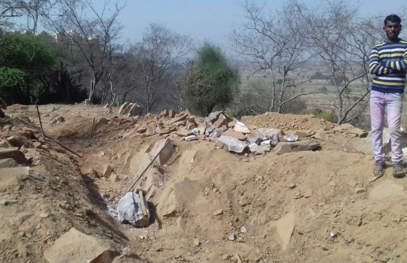 तस्वीरः ब्रह्मांचल पर्वत पर चल रहे निर्माण के लिए की जा रही खोदाई।