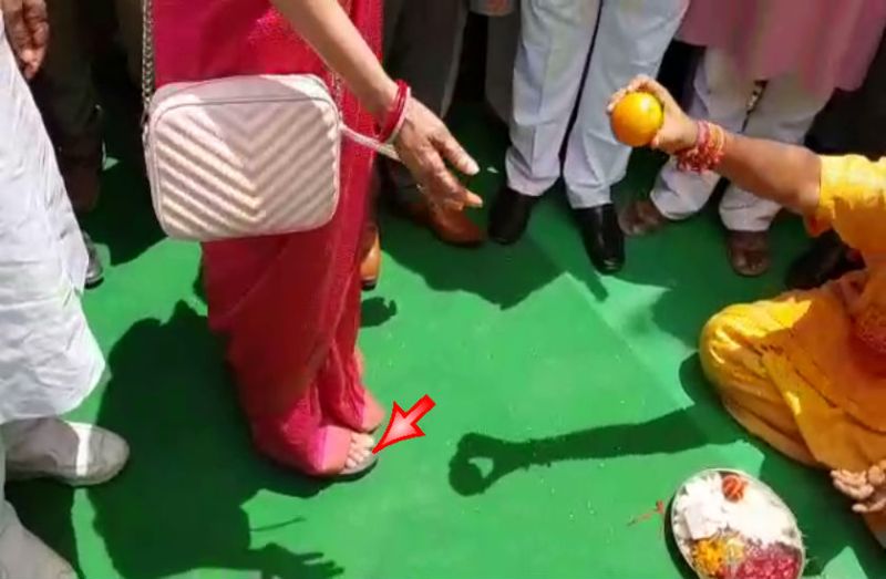 VIDEO पंडित जी नीचे बैठ पढ़ते रहे मंत्र, चप्पल पहनकर खड़े-खड़े की भाजपा सांसद हेमा मालिनी ने पूजा
