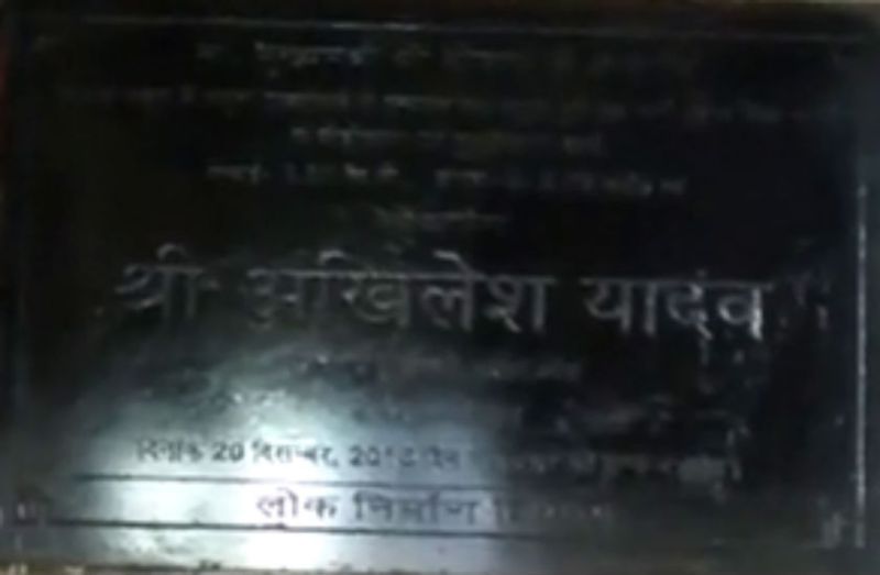 अखिलेश के नाम की शिला पट्टिका पर पोती कालिख, सपाइयों में आक्रोश