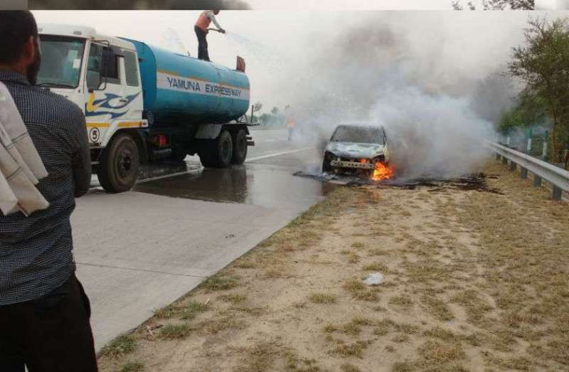 दरअसल दिल्ली को आजादपुर निवासी विजय कुमार निजी कार संख्या DL 8 CT 3602 से सपरिवार यमुना एक्सप्रेस वे के जरिए भिंड जा रहे थे। इसी दौरान सुबह तकरीबन चार बजे मथुरा के थाना सुरीर क्षेत्र में माइल स्टोन 90 के समीप उनकी चलती कार से धुआं उठने लगा। धुआं देख विजय कुमार ने कार रोकी औऱ बोनट उठाकर देखा तो आग की लपटें उटती दिखीं।