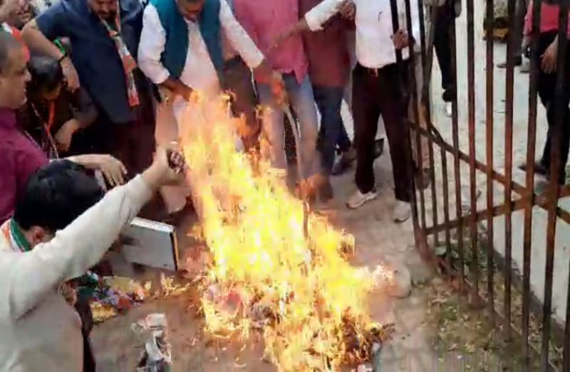 करने पहुंचे थे पुतला दहन, नेता जी खुद ही झुलस गए