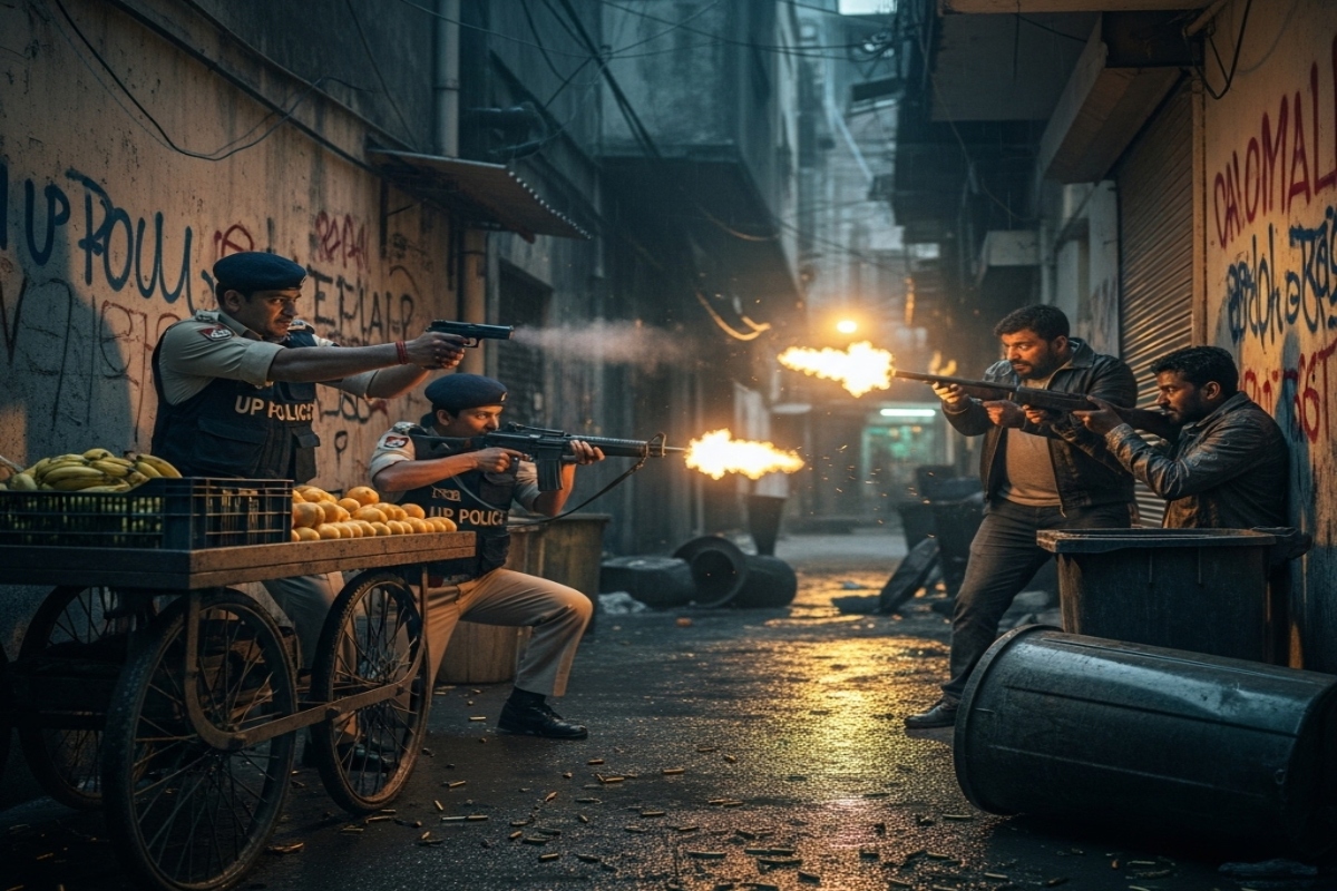 उत्तर प्रदेश में चल रहा पुलिस का ऑपरेशन लंगड़ा। फोटो सोर्स-Ai