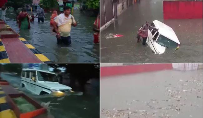 मथुरा के भूतेश्वर रोड चौराहे पर बने रेलवे पुल के नीचे हुए जलभराव में लोगों की गाड़ियां फंस गई। बीएसए कॉलेज के पास भी सड़कोंं पर पानी जमा हो गया है। नालों में सिल्ट जमा होने के चलते जल निकासी नहीं हो सकी। जिसका ख़मियज़ा आम राहगीर और स्थानीय लोगों को उठाना पड़ रहा है।