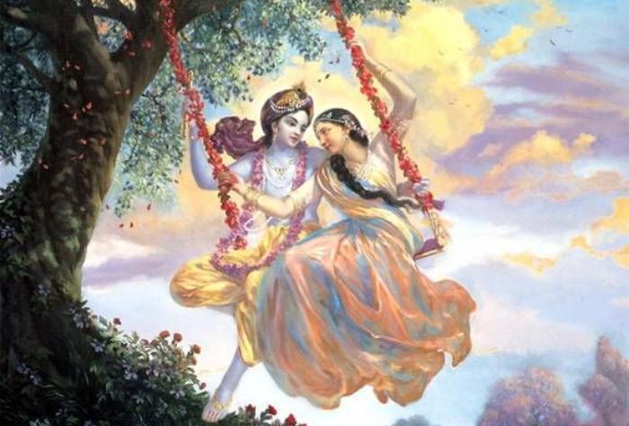 नंदगांव में श्रीकृष्ण और बलराम झूला झूलते हैं