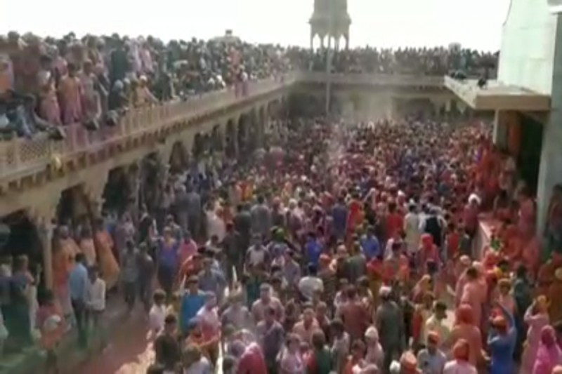 Holi 2022 : नंद गांव के रंगीली चौक पर खड़ी हुरियारिनों को जब बरसाना के हुरियारों ने हंसी-ठिठोली करके छेड़ना शुरू किया तो हुरियारिनों ने भी अपनी लाठी संभाल ली और उनकी प्रेम पगी लाठियों के वार के सामने हुरियारों ने भी अपने घुटने टेक दिए। होली के रसिया गाते हुए गोरिया रे महिलाओं द्वारा किए गए लाठियों के प्रहार का सामना करते नजर आए। हंसी ठिठोली का यह दौर शनिवार को नंदगांंव में लगातार चलता रहा। बता दें कि शुक्रवार को बरसाना के बाद शनिवार को नंदगांव की इस लठामार होली में शामिल होने के लिए बड़ी संख्या में श्रद्धालु पहुंचे और भगवान राधा-कृष्ण के प्रेम रंग में पूरी तरह सराबोर हो गए।