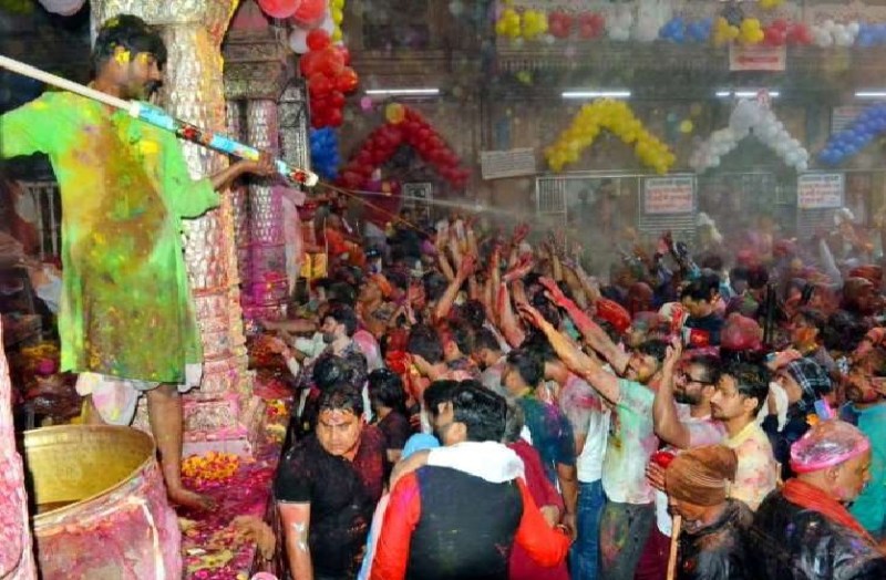 भीड़ के बीच बढ़चढ़कर होली के आनंद में डूबने को बेताब श्रद्धालुओं का जोश दिनभर हिलोरें मारता नजर आया। होली का ये रंग वृंदावन के हर मंदिर, मठ और आश्रम के साथ कुंजगलियों में भी चढ़ चुका था। हर ओर रंगों की बौछार और उड़ते गुलाल से आसमान भी लाल रंग का नजर आया। सेवायतों ने ठाकुरजी का प्रतिनिधित्व करते हुए जब भक्तों पर पिचकारी से टेसू का रंग डालना शुरू किया गया, तो भक्तों के आनंद का ठिकाना नहीं था। हर कोई रंगों में सराबोर होकर मदमस्त नजर आया।