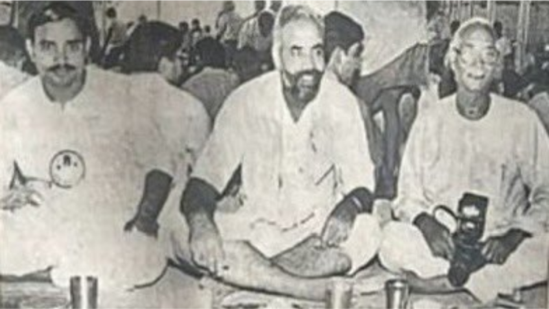 इसके साथ एक फोटो भी शेयर किया गया है, इसमें उन्हें जमीन पर बैठकर दूसरों के साथ खाना खाते देखा जा सकता है। इस बैठक के दौरान आरएसएस की तरफ से अयोध्या में भगवान श्री राम के मंदिर के निर्माण के लिए हर तरह के बलिदान का संकल्प लिया गया था। साथ ही राम जन्मभूमि आंदोलन को आगे बढ़ाने के लिए लोग यहां सकल्पित हुए थे। इसी धर्म संसद बैठक के बाद ही विश्व हिंदू परिषद ने भी अयोध्या में कारसेवा फिर से शुरू करने का संकल्प लिया था।