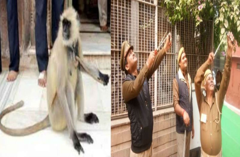 मथुरा। मथुरा में बंदरों का आतंक किस हद तक है, इसका ताजा उदाहरण एक बार फिर वृंदावन में देखने को मिला। गुरुवार को यहां राष्ट्रपति रामनाथ कोविंद आए हुए थे। बंदरों से उनकी सुरक्षा के लिए प्रशासन को पुलिसकर्मियों और लंगूरों को तैनात करना पड़ा। राष्ट्रपति की सुरक्षा में पुलिसकर्मी गुलेल ताने हुए नजर आए।