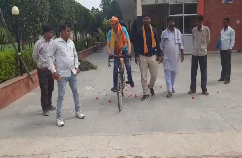 प्रधानमंत्री से मिलने निकला युवा साइकिल चलाकर कर पहुंचा मथुरा