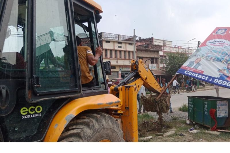 करहा रोड पर किए गए अवैध अतिक्रमण पर चला प्रशासन का बुलडोजर