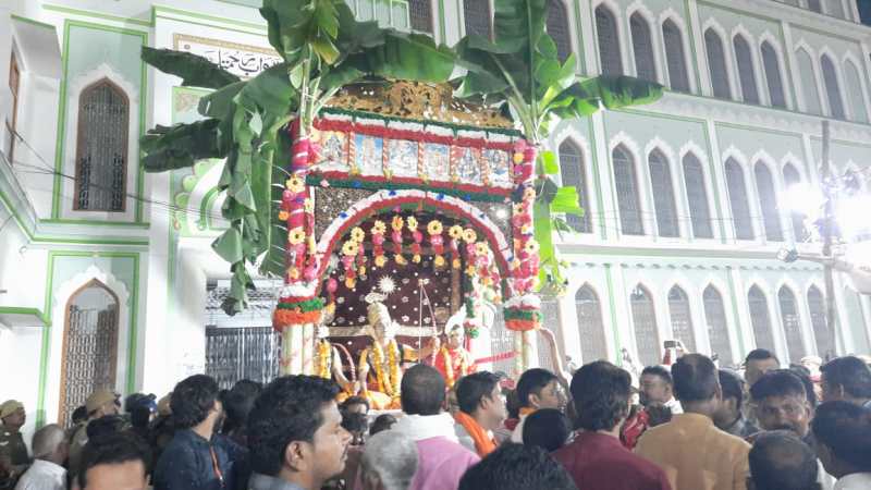 Mau Bharat Milap: गंगा जमुनी तहजीब के आधार पर मुगल काल के चली आ रहा यूपी के मऊ शहर का ऐतिहासिक भरत मिलाप गुरुवार की सुबह संपन्न हुआ। तड़के साढ़े चार बजे पुष्पक विमान शाही कटरा मस्जिद के दक्षिणी तरफ पहुंचा। इस दौरान वन से लौटे प्रभु श्री राम का रथ पुराने जमाने से चली आ रही परंपरा के तहत शाही कटरा मस्जिद के द्वार को तीन बार छू कर आगे बढ़ गया।
