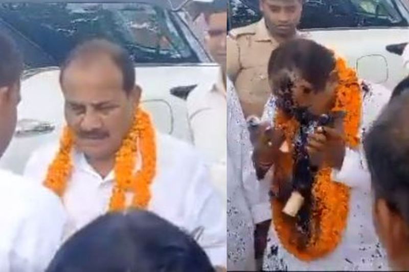 दारा सिंह चौहान पर स्याही फेंकी गई।