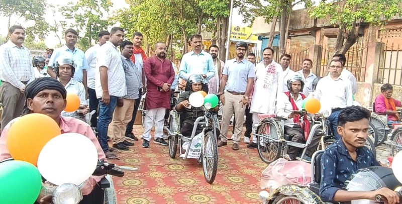 ट्राइसाइकिल वितरण समारोह में मुख्य अतिथि जिलाधिकारी ने दिव्यांगों को ई ट्राईसाइकिल वितरित कर कार्यक्रम का शुभारंभ किया और कहा कि इसे सिर्फ ट्राय साईकल ही नही अपितु रोजगार का एक उपकरण समझे।
