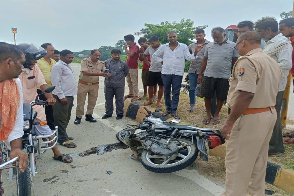 जानकारी के अनुसार, दिनेश कुमार (31 वर्ष) पुत्र रामकृष्ण और आदर्श (25 वर्ष) पुत्र रामदौड़, निवासी ग्राम गोविंदपुर थाना सोनहा, जनपद बस्ती, किसी कार्य से मऊ जा रहे थे। इसी दौरान अचानक सड़क पर एक व्यक्ति के आ जाने से बाइक चालक ने उसे बचाने की कोशिश की, लेकिन वाहन अनियंत्रित होकर डिवाइडर से टकरा गया।