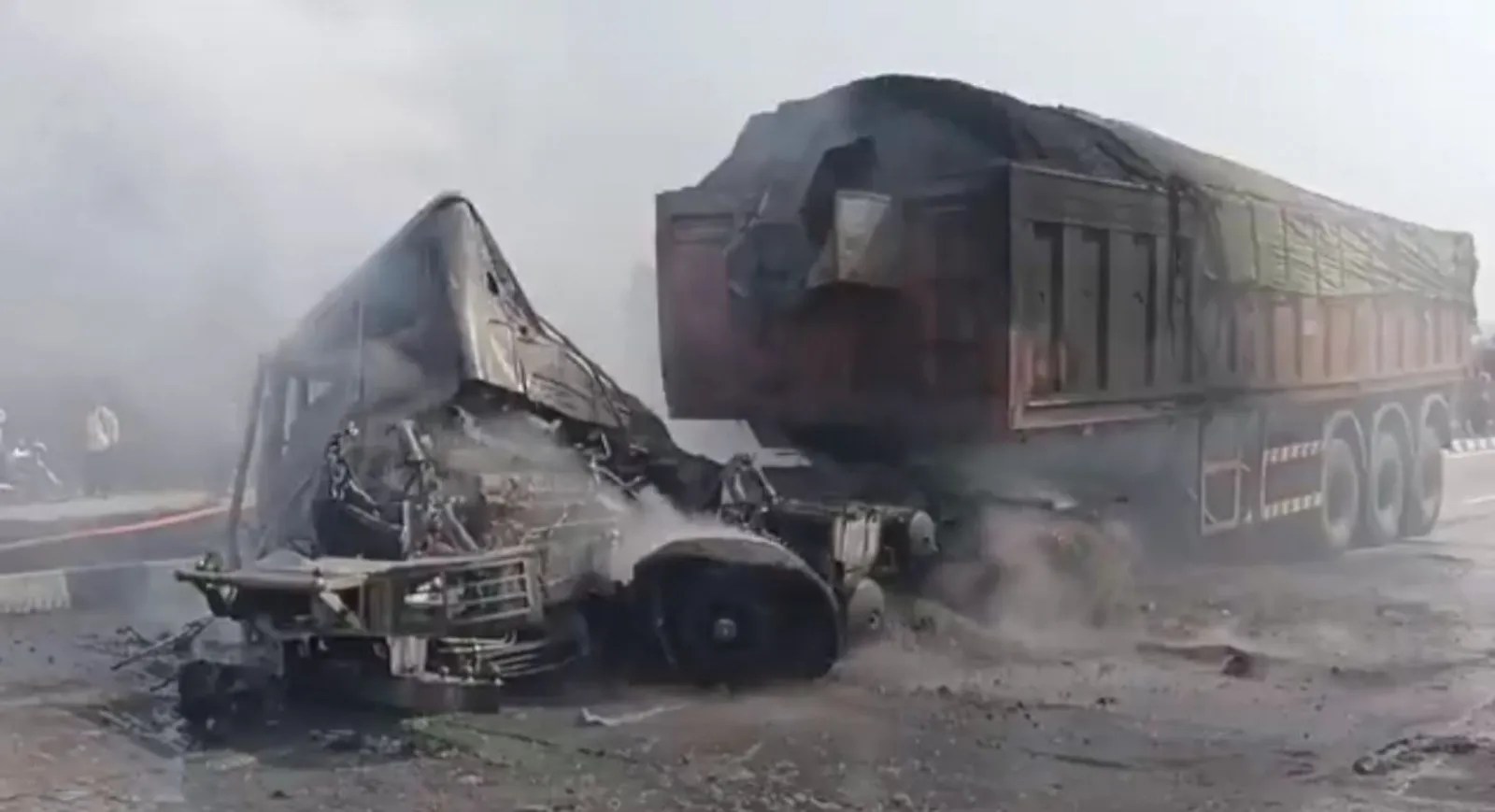मऊ: दोहरीघाट इलाके में वाराणसी-गोरखपुर नेशनल हाईवे पर तेज रफ्तार ट्रेलर ने एक ट्रक में टक्कर मार दी, जिससे ट्रक में आग लग गई। बताया जा रहा है कि ट्रक में कोयला लदा था और इस हादसे में ट्रक चालक की मौके पर ही जिंदा जलकर मौत हो गई। घटना के बाद हाईवे पर लंबा जाम लग गया जिसके कारण आवागमन बाधित हो गया।