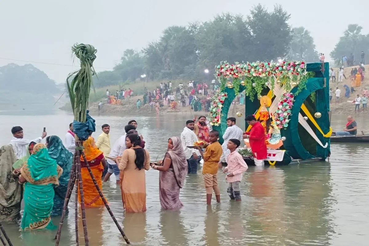 Chhath Puja: लोक महापर्व छठ पूजा की पावन बेला पर सोमवार की शाम डूबते सूर्य और मंगलवार की भोर उगते सूर्य को अर्घ्य अर्पित कर व्रती महिलाओं ने भगवान सूर्य देव से अपने परिवार की सुख-समृद्धि और मंगलकामना की। तमसा नदी के राजघाट और रामघाट पर श्रद्धालुओं की हजारों की भीड़ उमड़ पड़ी, जिसने पूरे क्षेत्र को भक्ति और आस्था के रंग में रंग दिया।