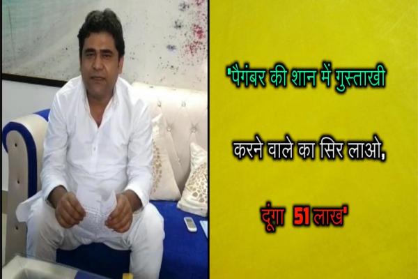 दरअसल, मेरठ के फलावदा थानाक्षेत्र के रसूलपुर मुरादनगर निवासी समाजसेवी शाहजेब रिजवी ने कहा है कि पैगंबर मोहम्मद के बारे में इस तरह के कृत्य से मुस्लिम समाज के लोगों को ठेस पहुंची है। ऐसी बयानबाजी इंसानियत को शर्मसार करने वाली है। आपत्तिजनक पोस्ट डालने वाले का सिर कलम करने वाले को वह 51 लाख रुपये का ईनाम देंगे। धनराशि की व्यवस्था के लिए वे मुस्लिम समाज के लोगों से योगदान करने के लिए भी कह रहे हैं।