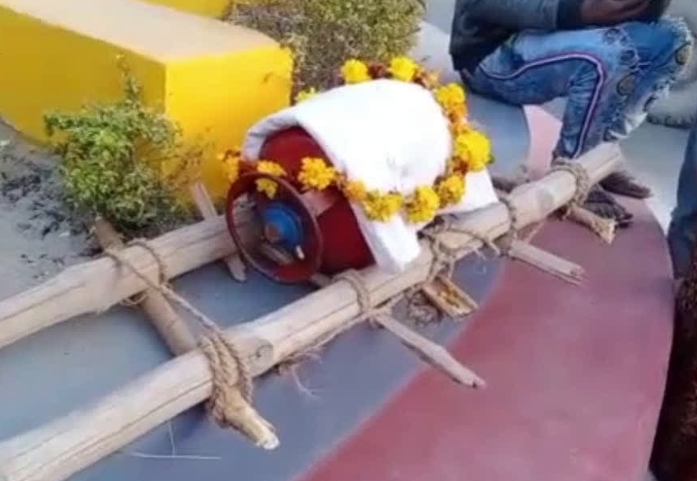 एलपीजी सिलेंडर की अर्थी निकालकर आप ने किया महंगाई के विरोध में प्रदर्शन