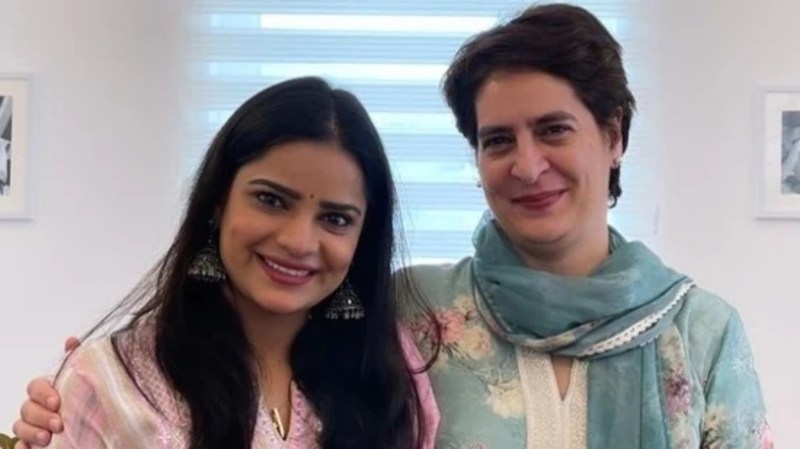 कांग्रेस महासचिव प्रियंका गांधी के साथ बिकनी गर्ल और कांग्रेसी नेत्री अर्चना गौतम। (फाइल फोटो)