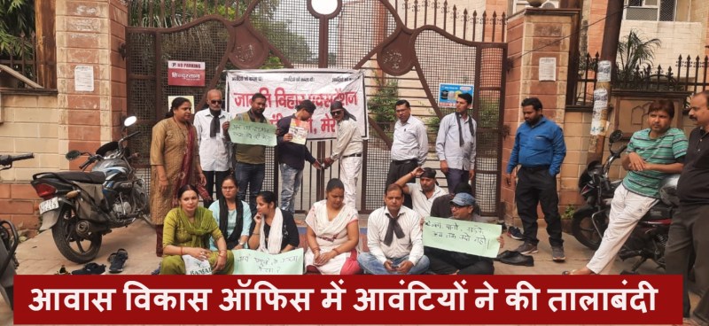 आवंटियों को नहीं मिला मकान का कब्जा तो आवास विकास ऑफिस में जड़ा ताला