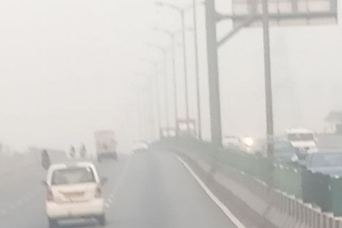 आज मंगलवार को हाइवे पर छाई प्रदूषण की धुंध।