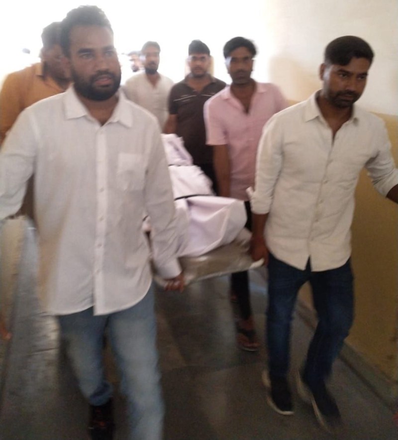 सीसीएसयू के पंडित दीनदयाल उपाध्याय छात्रावास के कमरे में बीटेक छात्र द्वारा आत्महत्या करने के बाद उसके शव को लेकर जाते।