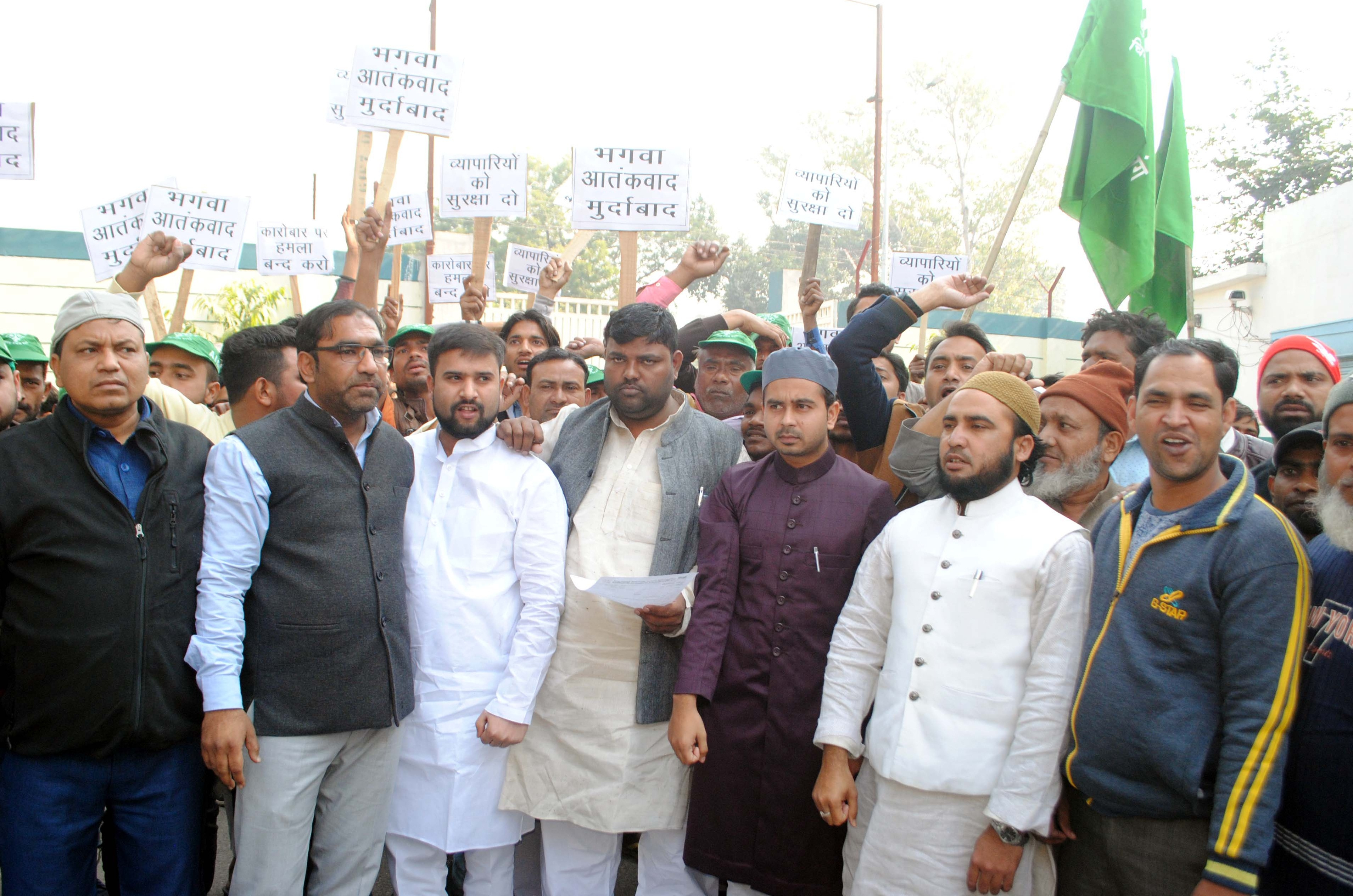 एआईएमआईएम प्रवक्ता शादाब चौहान ने आरोप लगाया कि पशु वाहनों के शहर में प्रवेश करने पर हिन्दूवादी संगठन खासकर बजरंगदल, विश्वहिन्दू परिषद , हिन्दू युवा वाहिनी , हिन्दू महासभा के कार्यकर्ताओं द्वारा गैर कानूनी तरीके से रोककर ट्रक डाइवरों के साथ मारपीट की जाती है। इतना ही नहीं अगर साथ में व्यापारी भी है तो उसे भी मारपीट कर अवैध वसूली के प्रयास किए जाते हैं। जिससे महानगर में कई बार सांप्रदायिक तनाव के हालात पैदा हुए हैं। कार्यकर्ताओं का कहना था कि प्रदेश में बीजेपी की सरकार के बाद से इनकी गुंडागर्दी और बढ़ी है। पुलिस से कई बार इनकी शिकायत की गई। लेकिन पुलिस और प्रशासन दोनों इस बात पर मौन है। मीट व्यापारियों ने पुलिस प्रशासन पर भी भगवाधारी तत्वों का पक्षपात किए जाने का आरोप लगाया है। कार्यकर्ताओं ने एसएसपी से इन पर कड़ाई से सख्ती की जाने की मांग । जिसके बाद एसएसपी ने भी व्यापारियों को सुरक्षा का भरोसा दिलाया है।