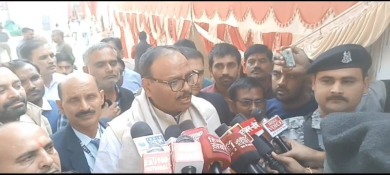 खतौली पहुंचे उपमुख्यमंत्री बृजेश पाठक मीडिया से बातचीत करते हुए।