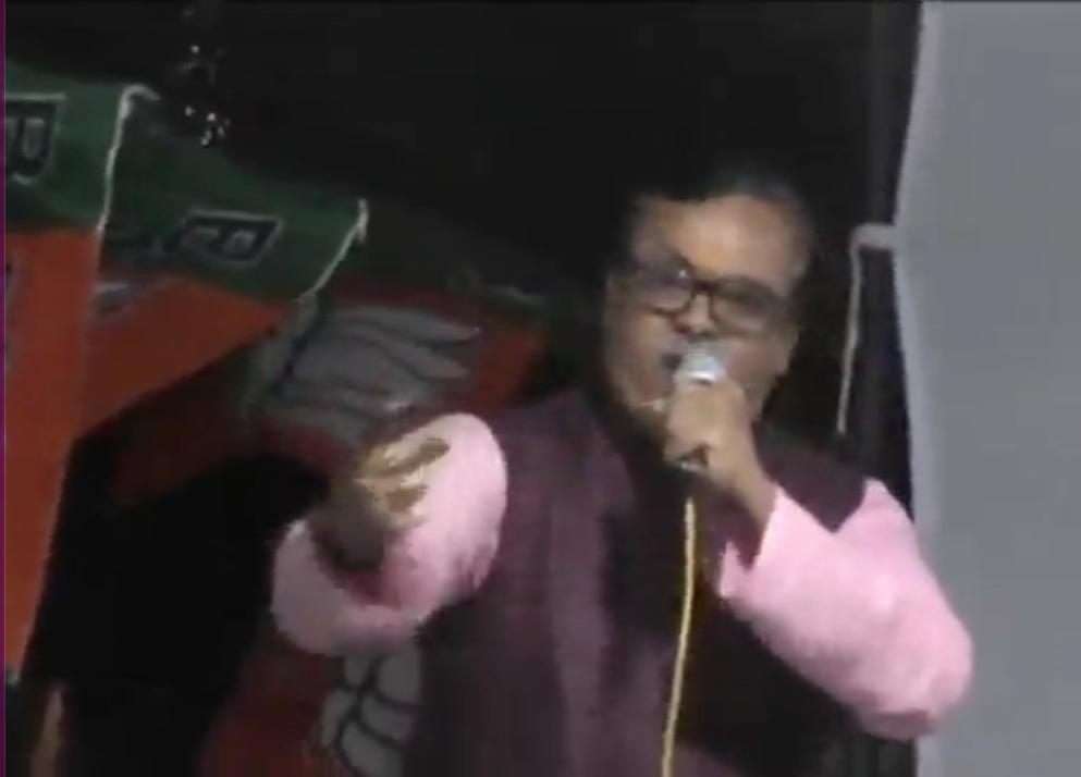 बीजेपी नेता ने एक सांस में 100 से ज्यादा बार नमो-नमो बोल दिया। इससे पहले नरेंद्र मोदी का शॉर्ट फॉर्म बताते हुए उन्होंने कहा कि नरेंद्र मोदी 'न' और मोदी का 'म' मिलकर नमो बनता है और इसके बाद करीब 35 सेकेंड के भीतर एक सांस में 100 से ज्यादा बार नमो-नमों बोलने लगे। आपको बता दें कि इससे पहले उन्होंने मंच से कमल-कमल की रट लगाई थी और लगातार करीब 35 बार कमल-कमल बोल गए थे।