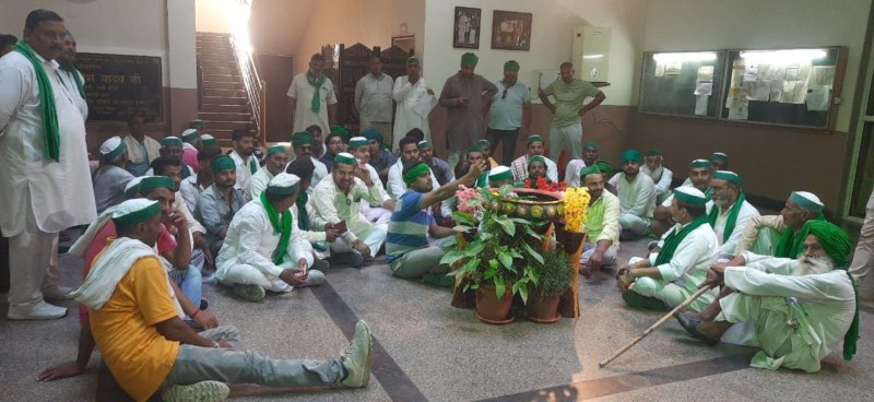 मेरठ पीवीवीएनएल ऊर्जा भवन पर धरने पर बैठे भारतीय किसान यूनियन के पदाधिकारी और किसान।