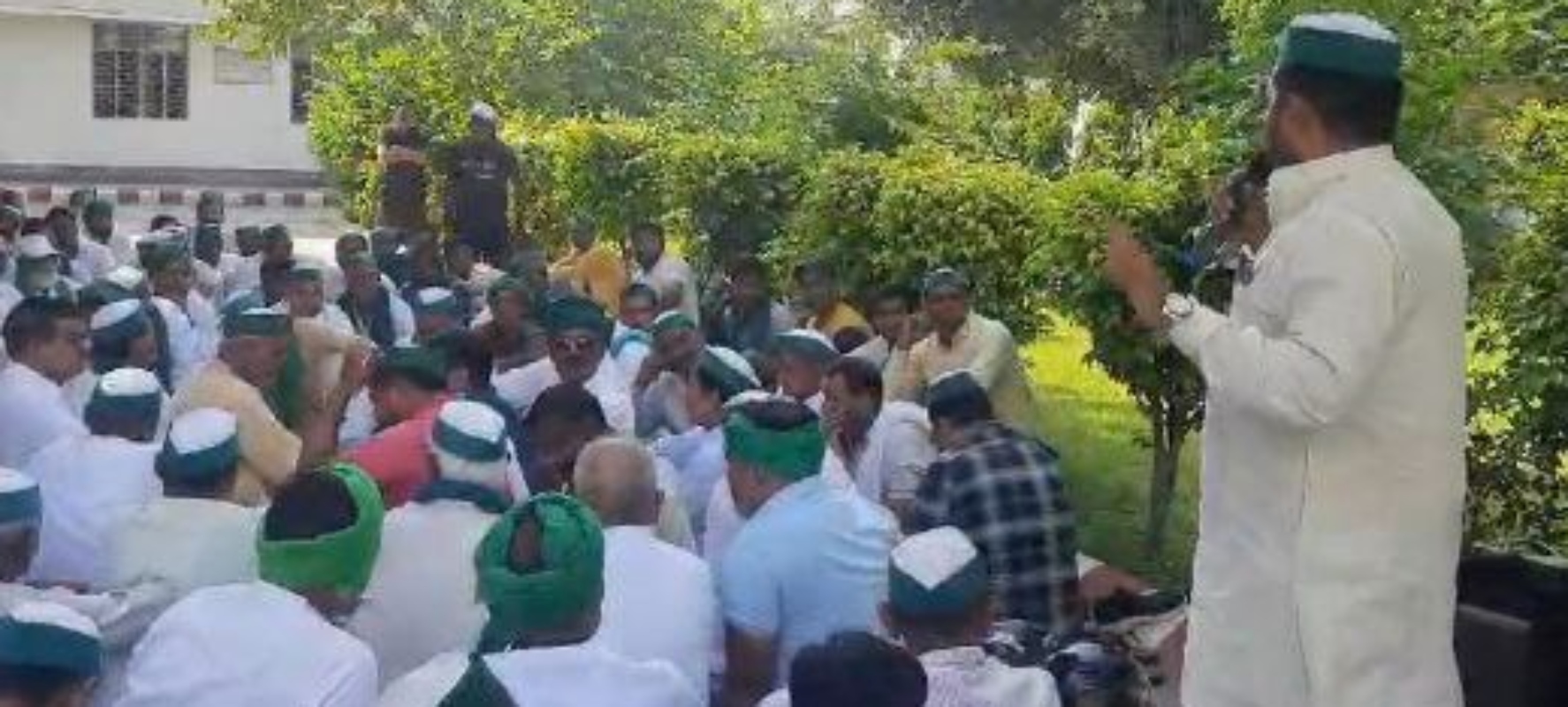 भाजपा विधायक नंद किशोर गुर्जर के बयान के बाद मुजफ्फरनगर में जुटे पश्चिम यूपी जिले के भाकियू कार्यकर्ताओं को संबोधित करते वक्ता।