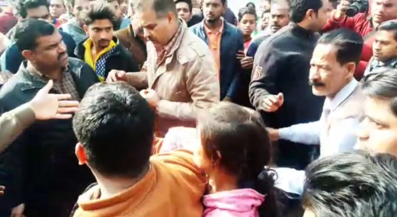 मेरठ। मेरठ का प्रमुख बाजार हापुड़ अड्डा स्थित भगत सिंह बाजार में सांप्रदायिक बवाल हो गया। वाल्मीकि और मुस्लिम युवकों के बीच रूपये के विवाद को लेकर मारपीट हो गई। वाल्मीकि समाज के युवकों ने मुस्लिम समाज के युवक की दुकान में तोड़फोड़ कर डाली। इसके बाद नाराज मुस्लिम समाज के लोगों ने हापुड़ अड्डे पर जाम लगा दिया। वहीं पुलिस से भी हाथापाई की। लावारिस बाइक को पुलिस जब वाहन में लदवाकर थाने भिजवाने लगी तो लोगों ने इसका विरोध किया और बाइक को पुलिस से हाथापाई कर नीचे उतार लिया। मौके पर पहुंचे एसपी सिटी रणविजय सिंह ने जाम खुलवाने के प्रयास किए, लेकिन मुस्लिम समाज के लोग जाम खोलने के लिए तैयार नहीं थे। मुस्लिम समाज के लोगों का कहना था कि पहले वाल्मीकि युवकों पर कार्रवाई की जाए उसके बाद ही जाम खोला जाएगा, लेकिन एसपी सिटी ने जब कार्रवाई की बात कही तो मुस्लिम समाज के लोग जाम खोलने को तैयार हो गए।