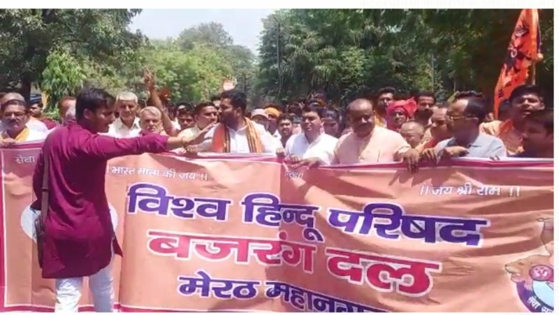 प्रदेश में हो रही हिंसक घटनाओं के विरोध में विहिप,बजरंग दल का मेरठ में जोरदार प्रदर्शन