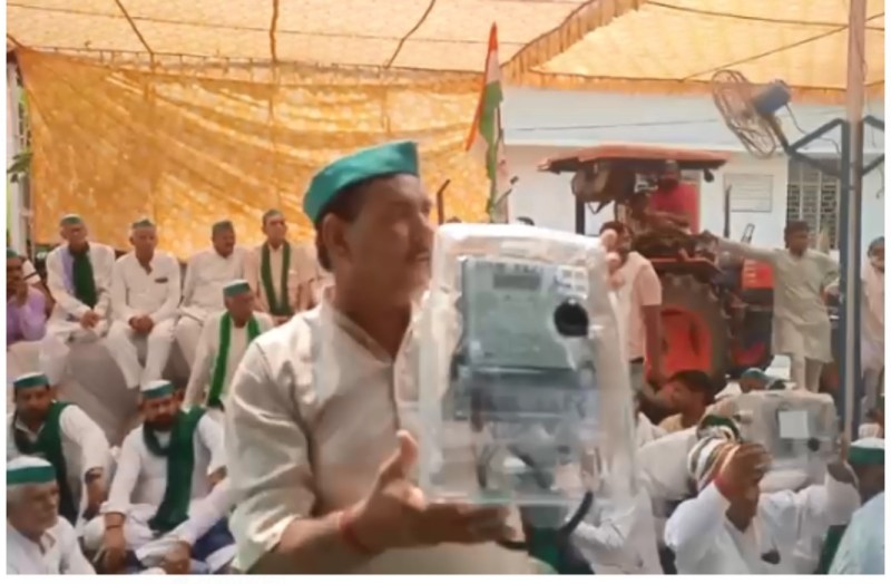 बिजली मीटर साथ लेकर पहुंचे किसानों का ऊर्जा भवन पर धरना, बोले नरेश टिकैत— अब होगी आरपार की लड़ाई