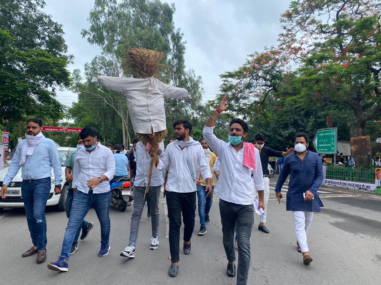 मेरठ। राजस्थान की राजनीति में चल रही उठापटक की आंच अब मेरठ पहुंच चुकी है। युवा नेता सचिन पायलट को कांग्रेस से निष्कासन और उप मुख्यमंत्री पद से हटाने के बाद गुर्जर महासभा में उबाल है। गुर्जर महासभा ने सचिन पायलट के नेतृत्व में मोर्चा खोल दिया है। आक्रोशित कार्यकताओं ने बुधवार को राजस्थान के मुख्यमंत्री अशोक गहलोत के खिलाफ जमकर नारेबाजी की और हंगामा किया। कार्यकर्ताओं ने राजस्थान प्रकरण को लेकर मुख्यमंत्री का कमिश्नरी चौराहे पर पुतला फूंका।