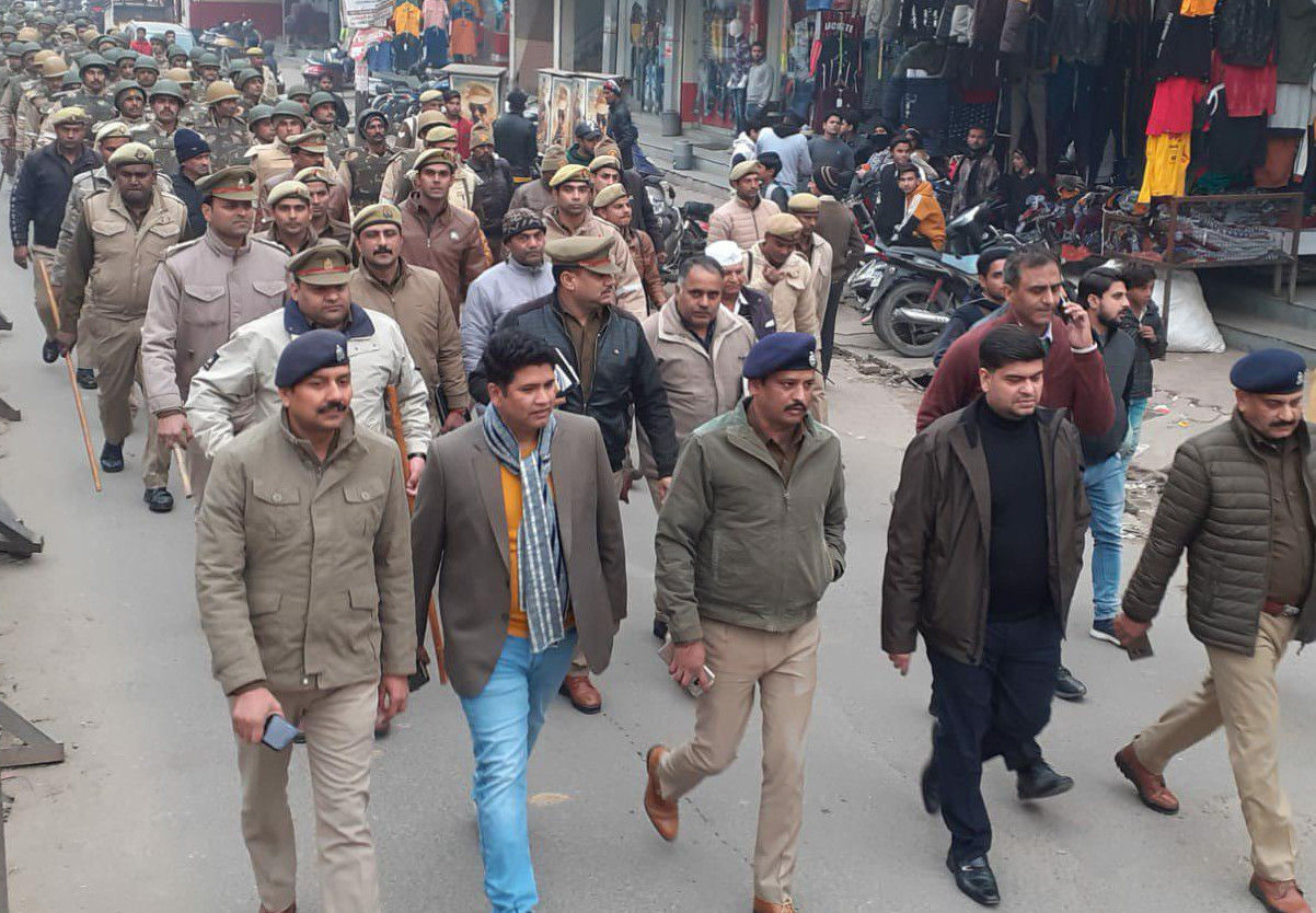 उन्होंने हापुड़ अड्डा चौपला, भूमिया पुल और बेगमपुल पर पैदल मार्च किया। अधिकारियों ने जिम्मेदार लोगों से आह्वान किया है कि वे अपने-अपने क्षेत्र के लोगों को समझाएं और कानून व शांति व्यवस्था बनाए रखने में सहयोग दें। सोशल मीडिया पर चलने वाली आपत्तिजनक वीडियो या पोस्ट पर ध्यान न दें। धार्मिक स्थलों पर बैठ या सभा नहीं होने दें। अधिकारियों ने पैदल मार्च के दौरान लोगों से अपील की कि बेवजह घर से बाहर न निकलें और अफवाहों पर बिल्कुल नहीं दें।