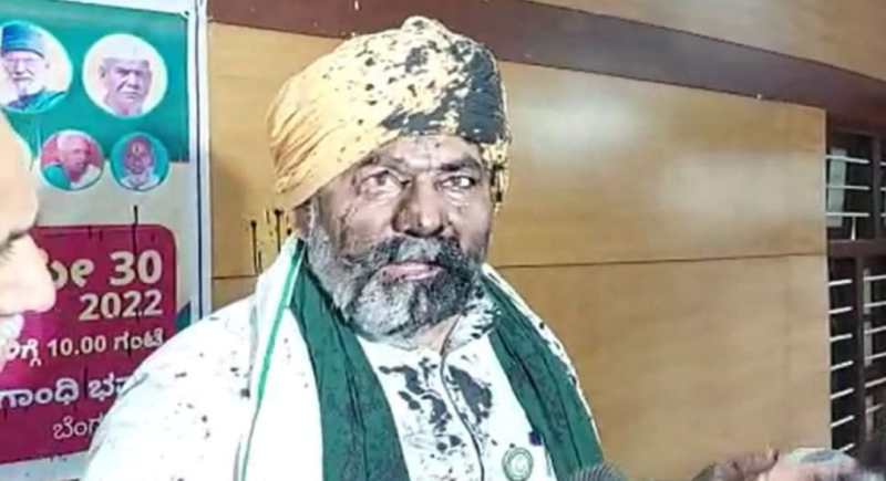 किसान नेता राकेश टिकैत पर आज एक व्यक्ति ने स्याही फेंक दी। जिस समय व्यक्ति ने इस हरकत को अंजाम दिया किसान नेता राकेश टिकैत एक पत्रकार वार्ता को संबोधित कर रहे थे। घटना बेंगलुरु के गांधी भवन में हुई। जहां पर राकेश टिकैत के चेहरे पर एक व्यक्ति ने स्याही फेंकी। भाकियू प्रवक्ता राकेश टिकैत बेंगलुरु के गांधी भवन में एक पत्रकारा वार्ता को संबोधित कर रहे थे। पुलिस ने आरोपी युवक को गिरफ्तार कर लिया है। उससे पूछताछ की जा रही है। वहीं भाकियू नेता राकेश टिकैत पर स्याही फेंकने के बाद से किसानों में आक्रोश है।