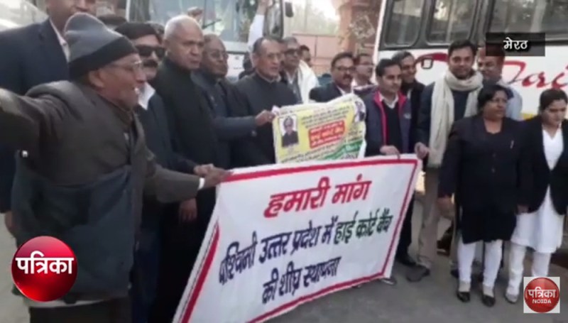 मेरठ। चुनावी मौसम में पश्चिम उप्र में हाईकोर्ट बेंच का मामला भी तेजी पकड़ता जा रहा है। इसी कड़ी में अधिवक्ता प्रतिदिन कुछ न कुछ गतिविधियां कर रहे हैं। इसी कड़ी में पश्चिम उत्तर प्रदेश में हाईकोर्ट बेंच की मांग को लेकर मेेेरठ के अधिवक्ताओं ने हंगामा करते हुए दिल्ली-हरिद्वार स्थित टोल प्लाजा पर जाम लगा दिया। वकीलों ने इस दौरान टोल प्लाजा को फ्री कर दिया। टोल प्लाजा करीब 4 घंटे फ्री रहा। इस दौरान टोल से निकलने वाले वाहनों से किसी प्रकार का टोल नहीं लिया गया।