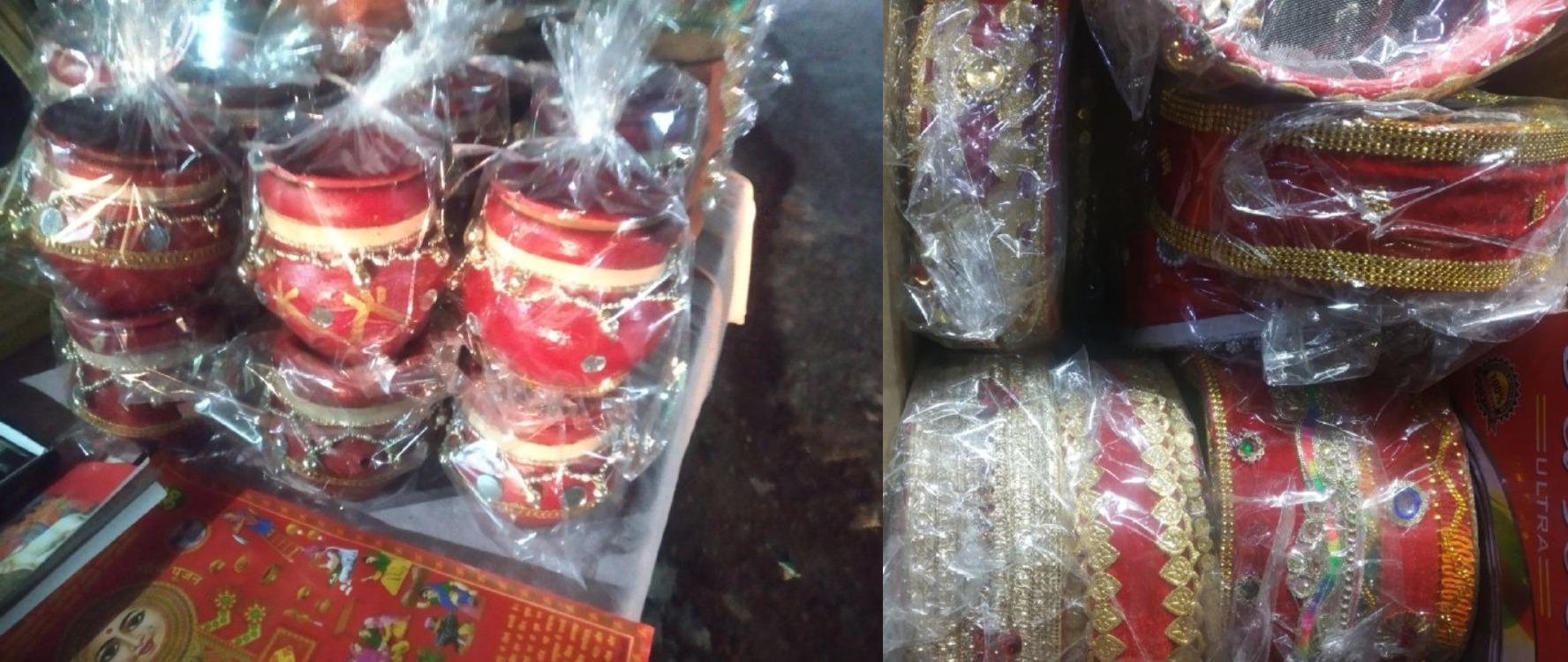 छलनी की कीमत भी 100 रुपये से लेकर 300 रुपये तक है। लोग अपनी जेब और हैसियत के हिसाब से करवे और छलनी की खरीदारी कर रहे हैं। नवयुगल दंपति में मीनाकारी करवे और राजस्थानी डिजाइन में सजी छलनी की अधिक डिमांड है। इसके अलावा करवा चौथ के दिन पूजा के लिए उपयोग में लाया जाना वाला सामान भी पूरा पैक में मिल रहा है। वहीं अगर करवा चौथ पर पूरा पैकेज लेना चाहते हैं तो वह भी बाजार में उपलब्ध है। इस पैकेज में करवा, छलनी,देवी की मूर्ति, पूजा का सामान,थाली, आरती दीया, पूजा की किताब इत्यादी हैं।
